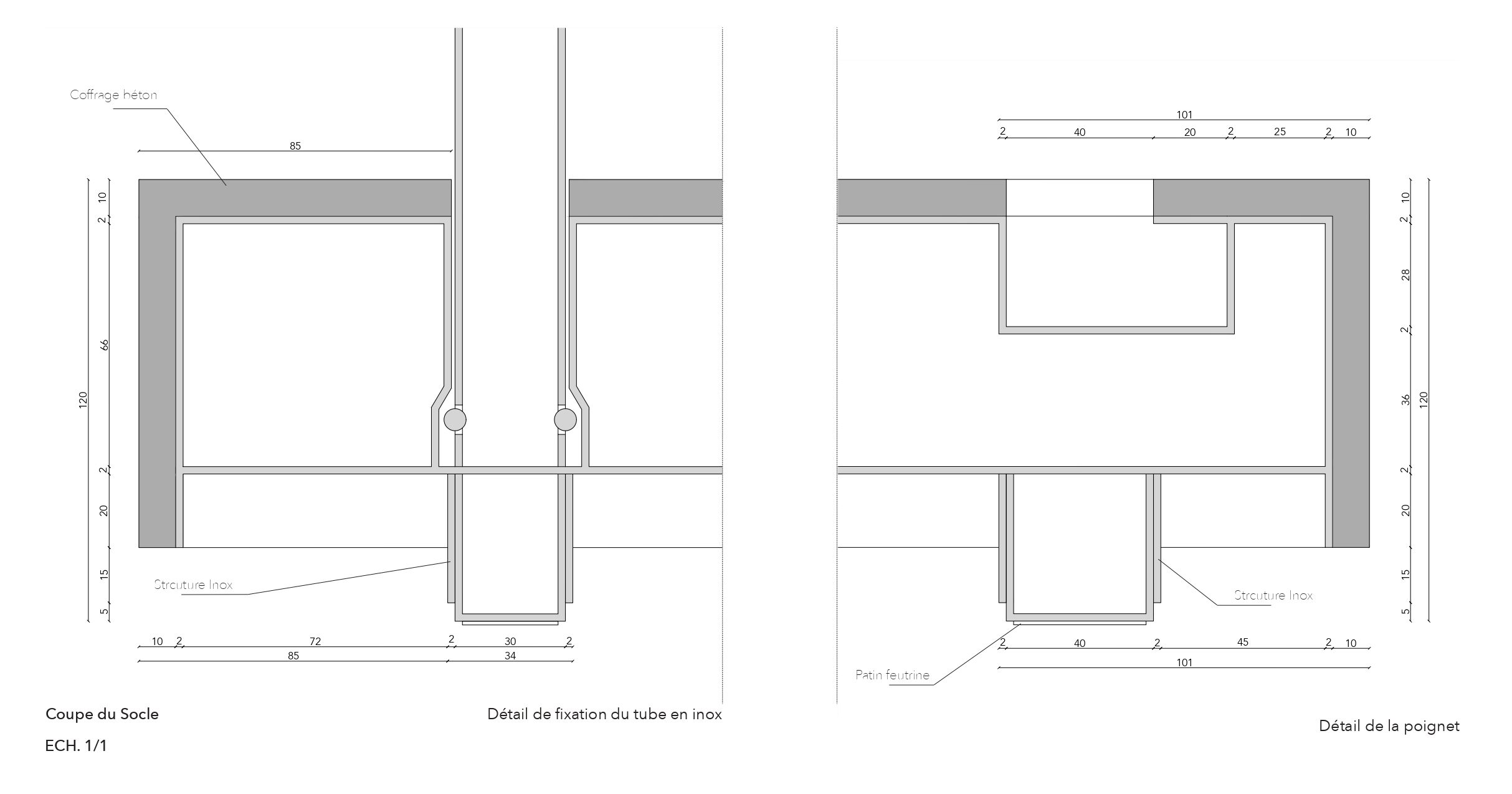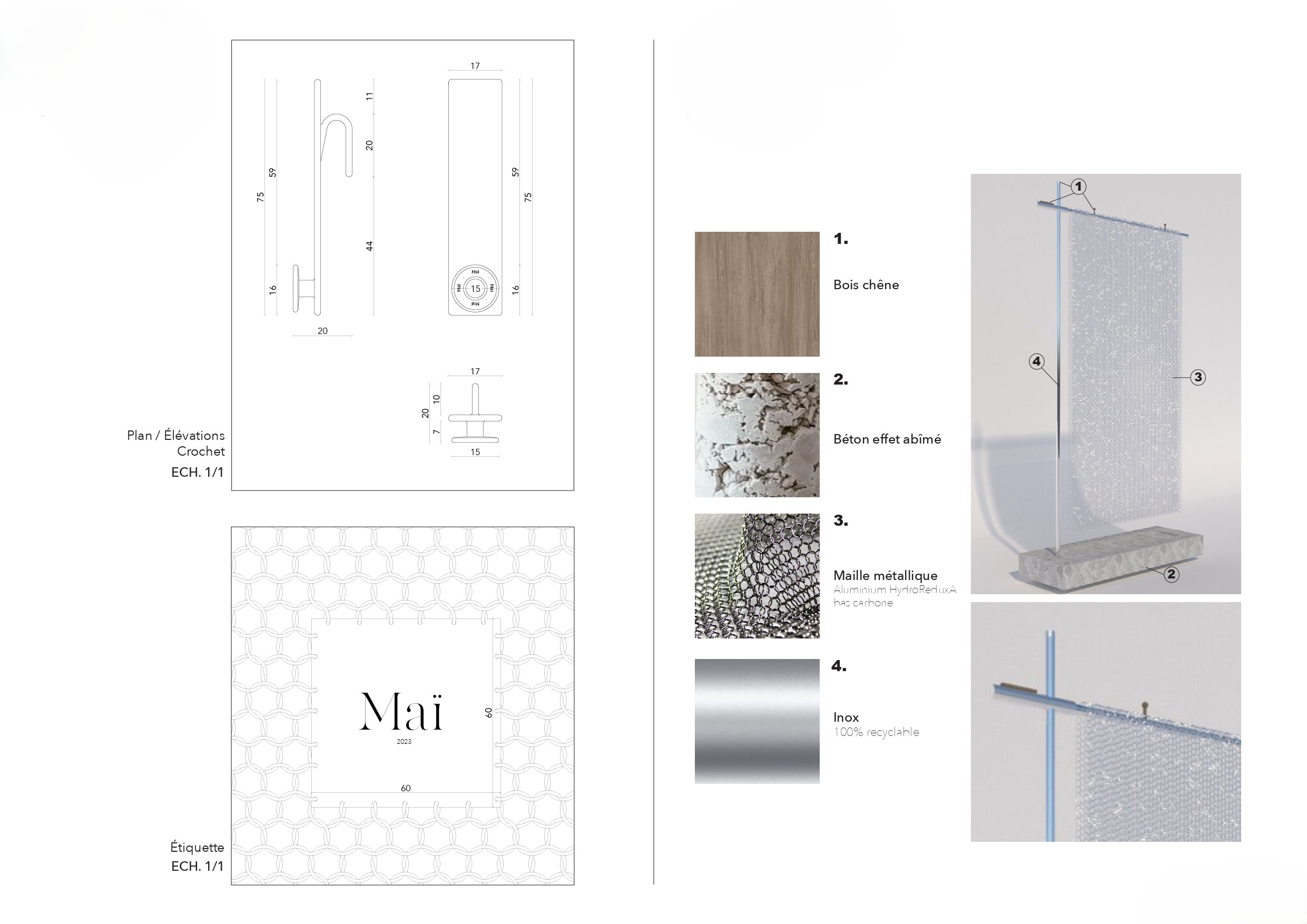 L’objectif était de concevoir un support capable d’accueillir des œuvres, des photographies ou des tableaux, en évoquant cette sensation de légèreté tout en garantissant une stabilité suffisante.